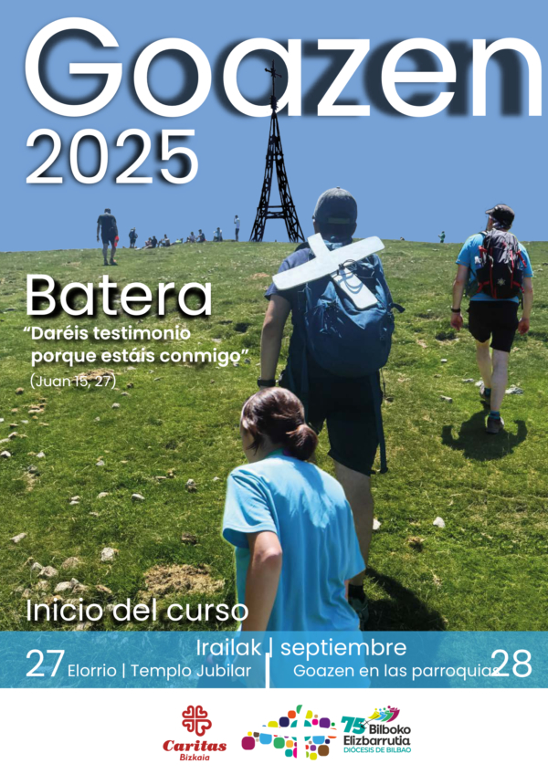 Como peregrinos de la Esperanza, el 27 de septiembre, sábado, en Elorrio, iniciaremos un nuevo curso pastoral con el “Goazen 2025”. La basílica de la Purísima Concepción, en Elorrio, nos acogerá ese día como templo jubilar. Converger en la basílica de Elorrio, desde las distintas comunidades y entidades de Iglesia que pueblan Bizkaia, nos ayudará a reforzar la “begirada” con la que vamos a enfocar el VI Plan Diocesano de Evangelización siguiendo la petición del Sínodo 2021- 2024: apostar por ser una comunidad participativa y misionera. Goazen! – ¡Decidámonos por “caminar juntos“!