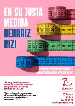 Este año celebramos el 70 aniversario de Cáritas. 70 años de compromiso de la Iglesia de Bizkaia con las situaciones de vulnerabilidad y exclusión. El cartel recoge el logo de este compromiso.