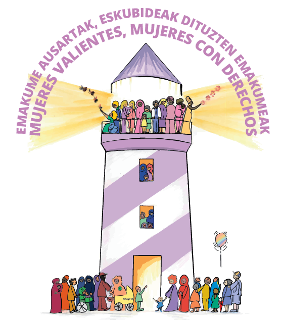 Ilustrazio bat diseinatu dugu tailerrerako, eskubide-berdintasuna egia den askotariko gizarte batekin konprometitzeko beharra gogoraraziko diguna.