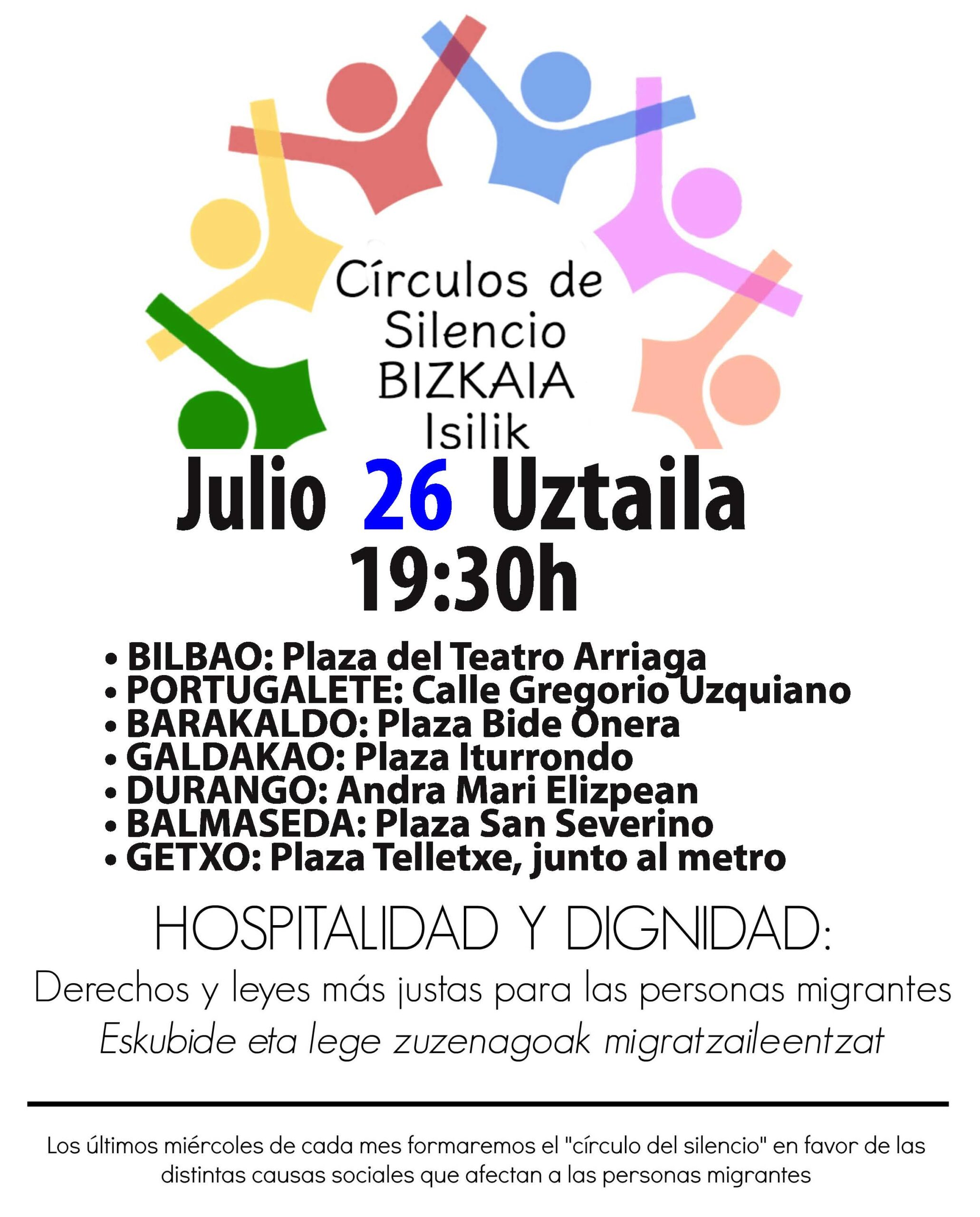 Cada miércoles último de mes se realizan los Círculos del Silencio para denunciar unas políticas injustas que disminuyen derechos fundamentales de las personas en situación de movilidad humana forzosa, y para dar voz a quienes no pueden ser escuchados y son silenciados.